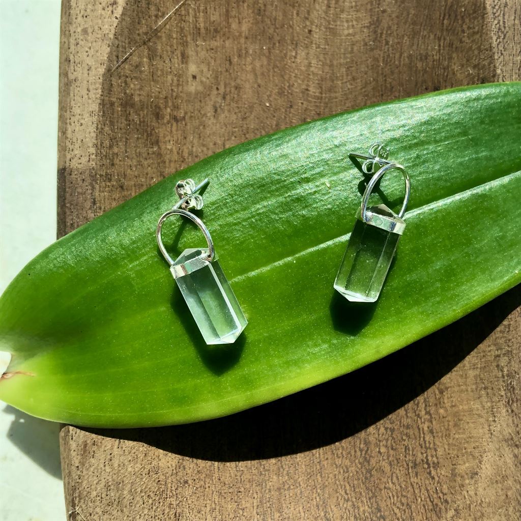 Brincos realizados em Pontas Quartzo Cristal e Prata 950
